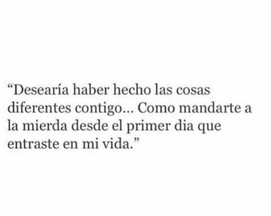Desearía haber hecho las cossas diferentes contigo... Como mandarte a la mierda desde el primer día que entraste en mi vida.
